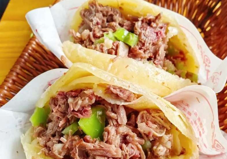 薄皮大馅,肉馅拌着大葱鸡蛋,咬开能看见油花滋滋往外冒!最绝的是用铲子拍饼那“啪啪”声,听着比吃还过瘾!香河大妈神操作:“一张饼能卷下整个香河!”