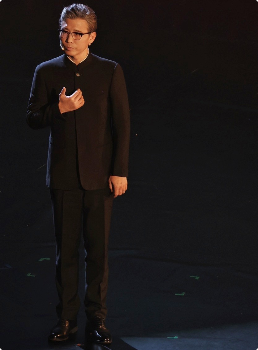 这一点,在本次晚会现场也能看出,他站在聚光灯下,没有多余动作,却能让人注意到他。