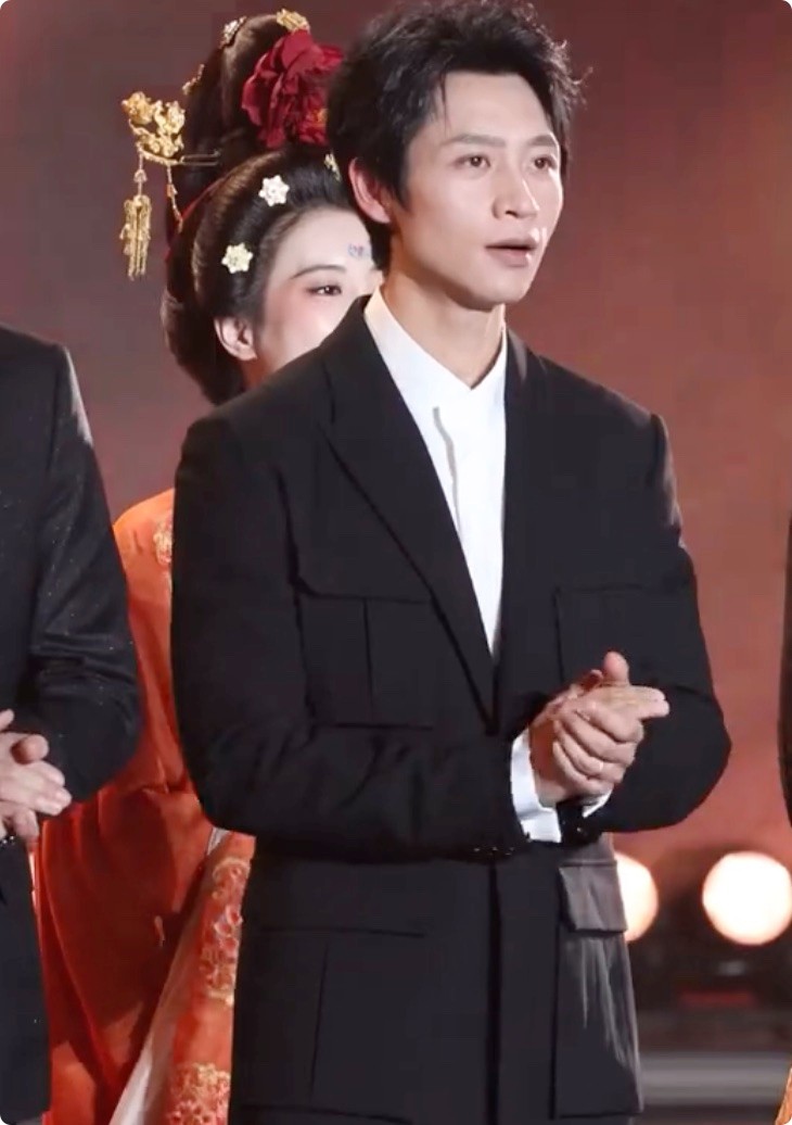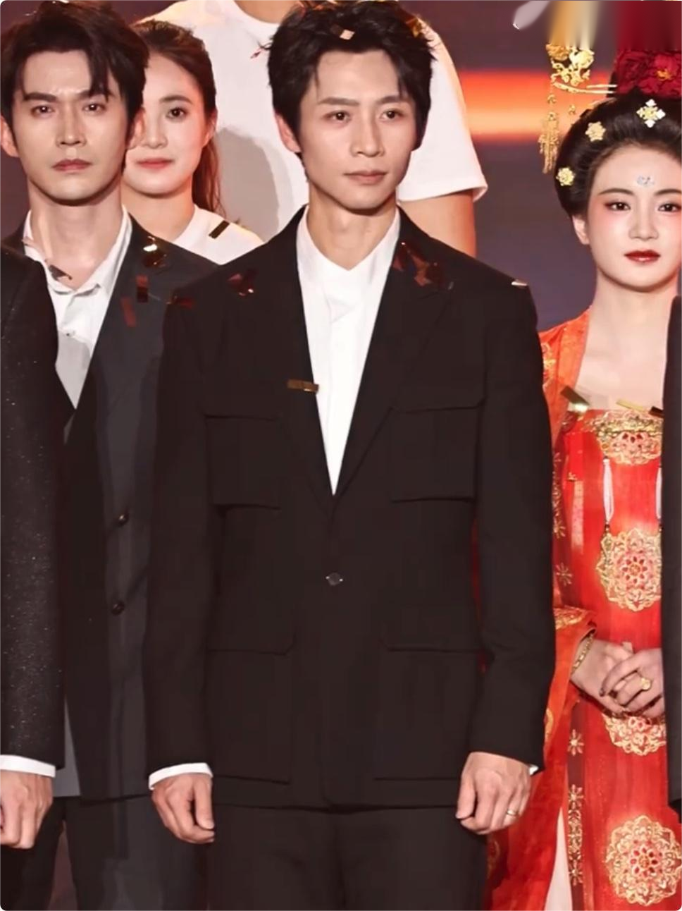 现场的他,站得笔直、话不多,镜头扫到那双有点凹陷的眼眶,却比谁都有演员的光亮。