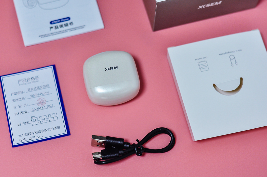拿到西圣 Plume 的第一感觉就是轻,单耳仅 5.9g 的重量,比一枚硬币还轻。方形的包装清新又简洁。我之前也用过不少夹耳式耳机,大多戴半小时就耳尖发疼,尤其是小耳朵星人,每次都要在 “听歌” 和 “耳朵舒适” 之间做选择。