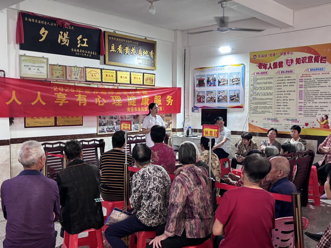 10月26日上午,福州市福延公益慈善服务中心志愿者总队联合千金药业、南安市妇幼保健院及金淘镇卫生院,在南安市金淘镇东溪村老人活动中心,举办以“情系东溪村 重阳送安康”为主题的公益义诊活动,为当地老人送上节日关怀。