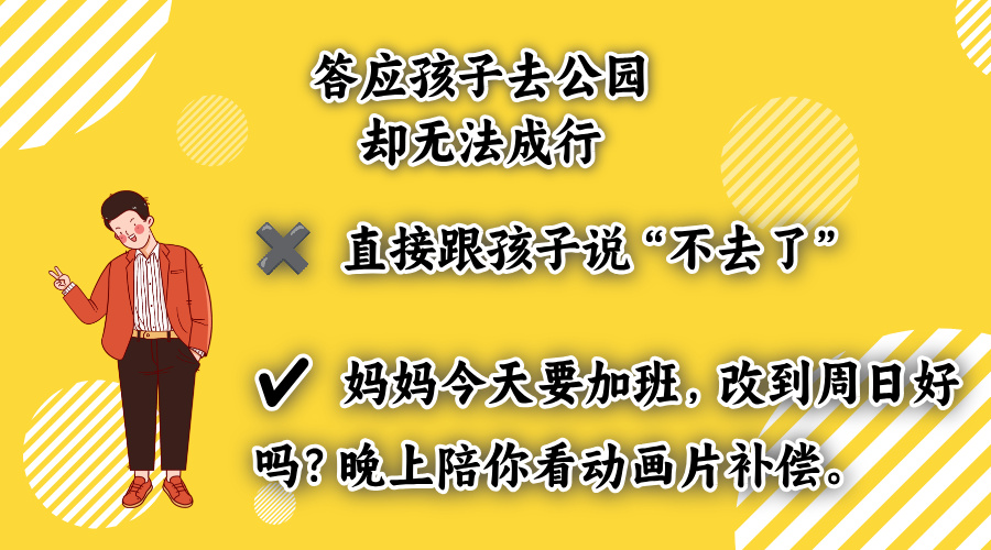 主动沟通+方案弥补的方式,可以让孩子感受到“重视”,直接爽约不解释,只会让孩子觉得妈妈说话不算话,我的期待并不重要。