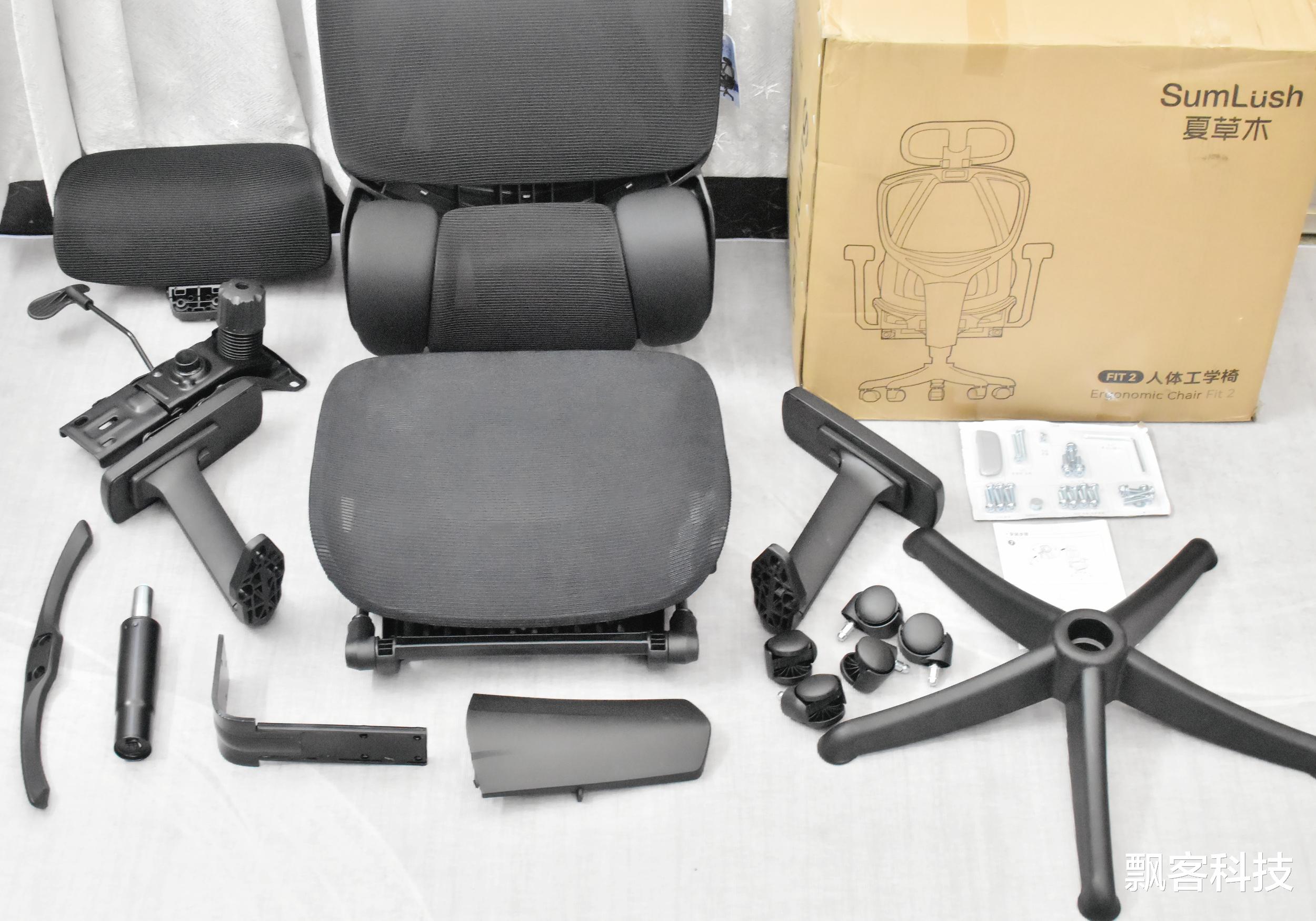 拿到手时,SumLush夏草木Fit2人体工学椅的包装十分严实,拆开包装查看了一下零部件齐全且完好无损。看着这些摆放起来的椅子零件,不禁对组装后的成品充满了期待。