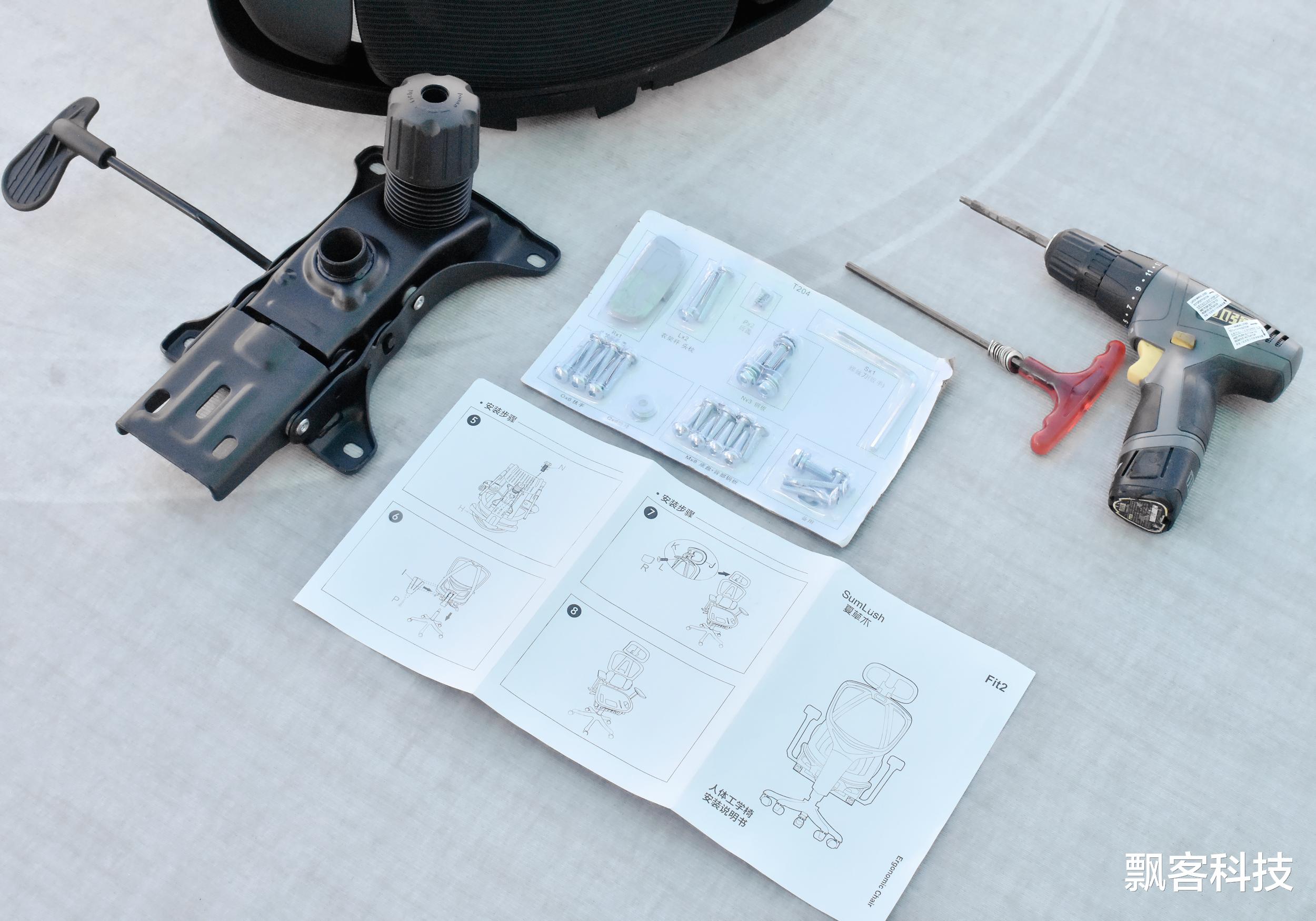 夏草木Fit2人体工学椅采用的同样是散件发货,用户到手后需要简单进行组装,在包装清单中附有一份带图例步骤的安装说明书,螺丝、工具的包装上都有具体的代号和数量,另外还送了几颗备用螺丝。