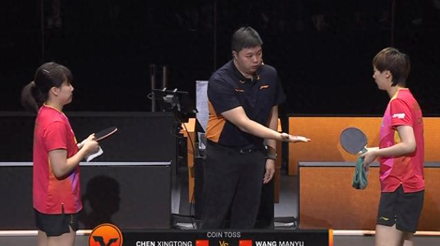 决胜局王曼昱取得3-1领先,陈幸同选择暂停调整;接着陈幸同连续相持占上风,以5-4反超比分。此后,王曼昱调整节奏重新占优,连续得分以10-5拿到赛点,并以11-5获胜结束比赛。