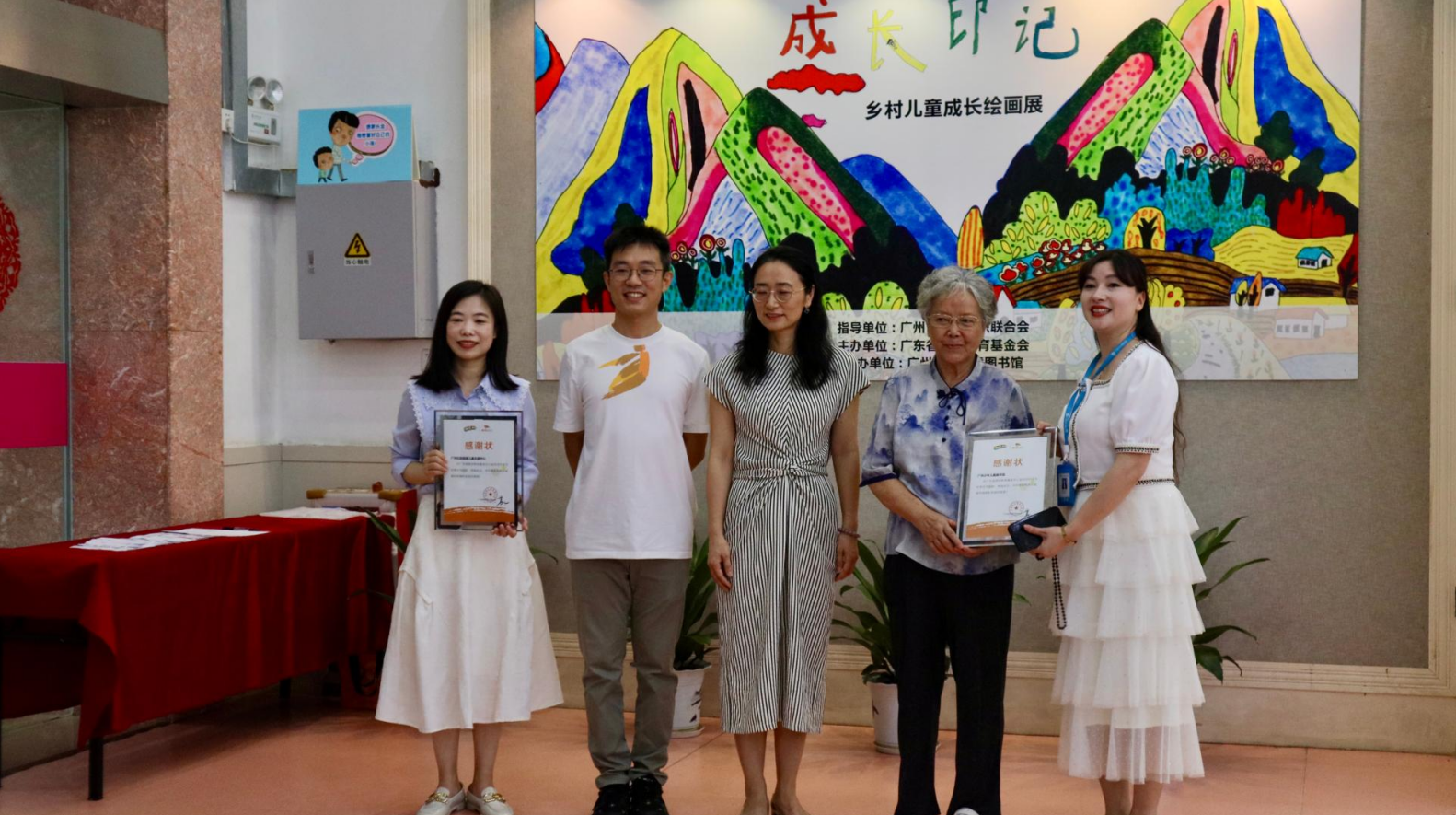 活动特别设置了优秀公益合作伙伴颁奖仪式,由麦田教育基金会秘书长关步杨为长期以来支持乡村儿童美育事业的伙伴们颁发证书,感谢他们以空间为纸、以行动为墨,为孩子们铺就艺术之路。广州市少年儿童图书馆因其为乡村孩子作品开辟城市展厅、促成“童画与童书相遇”的贡献而受到特别感谢。