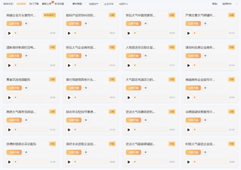 这个是我的私藏!专注配乐和BGM,分类特别符合国内创作场景。搜“治愈Vlog”或“国潮宣传”,出来的结果精准得惊人。很多音乐提供完整版和循环版,对剪辑新手太友好了。同样关注商用授权,很多素材标注了“企业商用授权”,用起来安心。