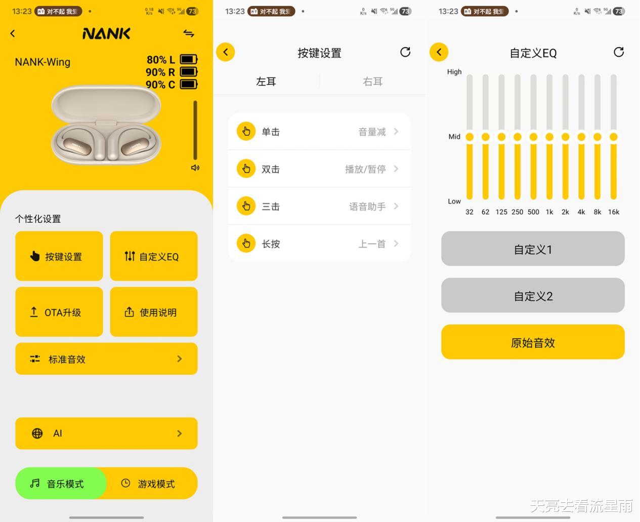 续航方面,南卡Wing的表现也非常出色。单次充满电后,耳机可以连续播放音乐约6小时,配合充电盒使用,总续航时间可达18小时。对于日常使用来说,这个续航时间已经足够满足大多数用户的需求。操控体验上,南卡Wing的操控非常简单直观。通过轻触耳机的触控区域,可以实现播放/暂停、切换歌曲、接听/挂断电话等多种操作。此外,通过专属app,用户可以实现多项功能定制,包括音效模式切换、空间音频调节、AI语音功能开关、固件在线升级等,操作更直观,体验更灵活。