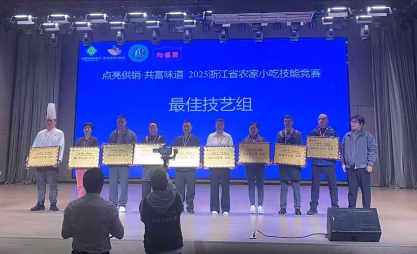 2025年12月7日,由浙江省供销合作社联合社、浙江省农业农村厅指导,浙江农业商贸职业学院承办的“点亮供销·共富味道”农家小吃进高校暨浙江省农家小吃技能竞赛在绍兴柯桥校区盛大启幕。来自全省11个地市的42家单位同台竞技,面道赞(浙江)品牌管理有限公司凭借麦饼、麦饺筒、蒸汤包三款宁海传统小吃,以精湛技艺与创新融合征服评委与观众,最终荣获“2025年度浙江省十佳特色农家小吃”称号,成为全省农家小吃产业高质量发展的标杆案例。