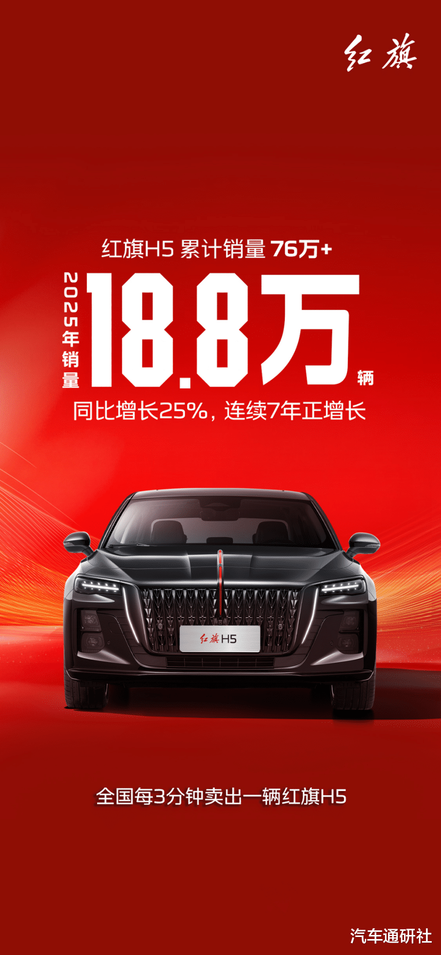 红旗H5的市场表现,给了我们一个绝佳的机会——这款B级轿车,以连续七年销量正增长的姿态,年销突破18万辆,累计用户逼近80万,是当之无愧的“国民神车”。