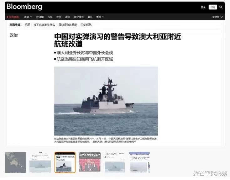 就拿澳大利亚来说,澳大利亚一方面承认中国海军在塔斯曼海域的训练情况符合相关国际法,但另一方面澳大利亚媒体认为中国海军在此处海域的实弹演练行动对附近的航班带来了不好的影响,看起来澳方这是找不到合理的借口指责中国海军的演练行动后,开始硬找借口了。同时新西兰媒体也在炒作中国海军的演练行动让附近航班不得不改变航线,明显是跟澳大利亚一个鼻孔眼里出气。