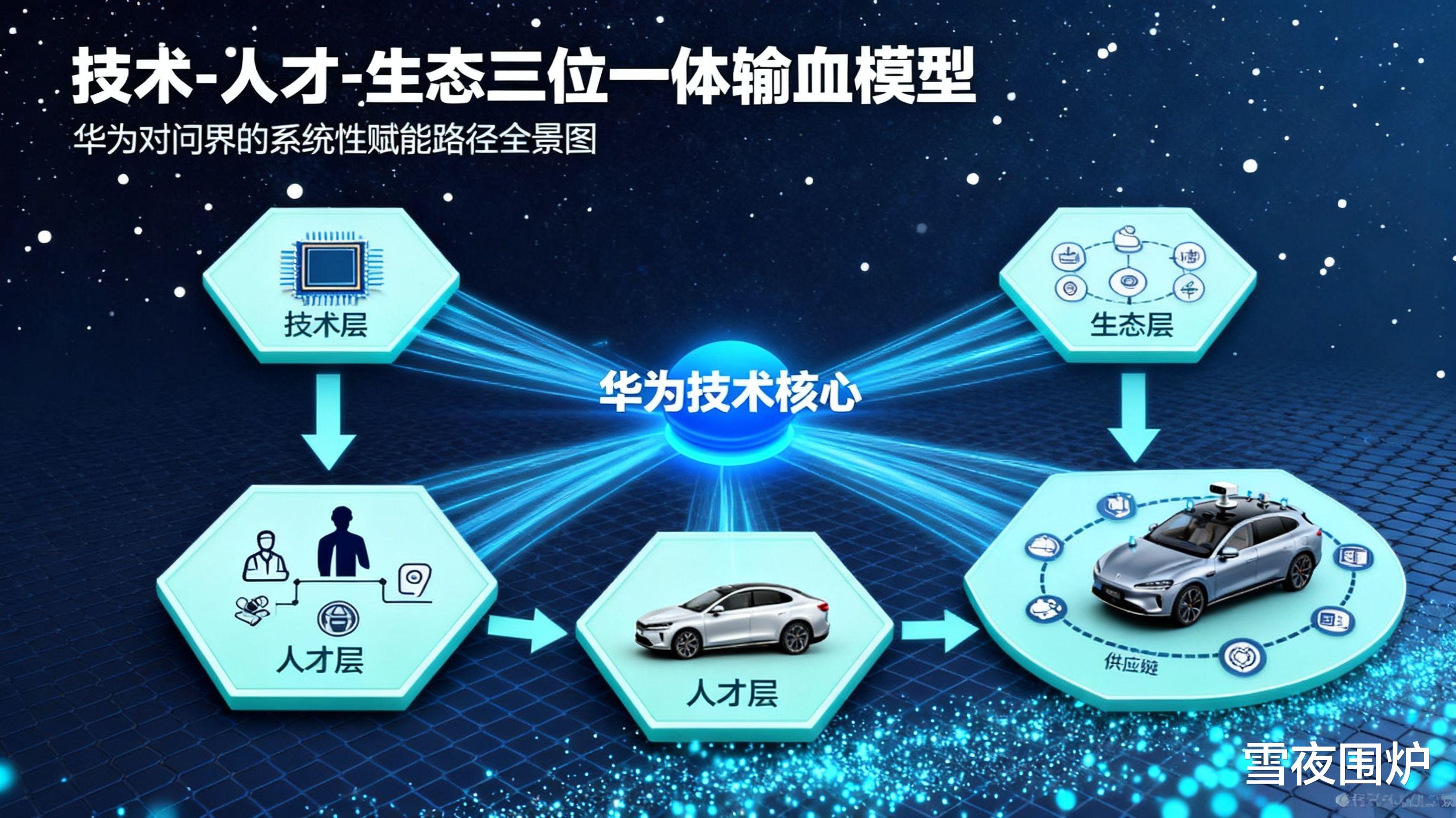 二、技术“血管”:华为如何向汽车“输血”华为向汽车的“输血”,绝非简单的人才流动,而是一套由核心技术与生态平台构成的系统性输出: