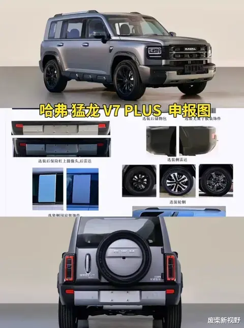 【哈弗猛龙 V7 PLUS】哈弗猛龙 V7 PLUS 这次换了个身份申报,硬派范儿十足!设计偏传统硬派越野,4792*1950*1886mm 车身,2850mm 轴距,还提供 7 座布局,不过三排空间更适合应急。动力是 1.5T/115kW 发动机 + 双电机四驱,就是常见的 Hi4 插混架构,靠谱耐用。能选装中网、保险杠摄像头、侧踏板,甚至激光雷达,估计会分高配(带辅助驾驶)和基础版,拉低入门门槛,满足不同用户需求,硬派新能源 SUV 市场又多了个靠谱选择~