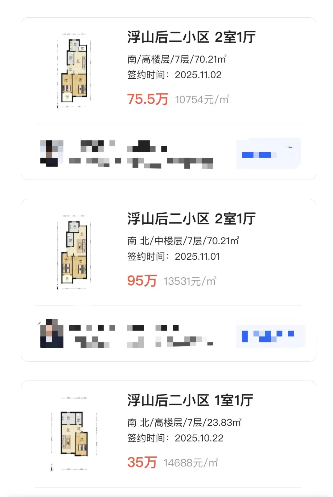 这说明,还在追浮山后学区房的家长,多数还是往老破小方向出手。原因很简单:便宜。