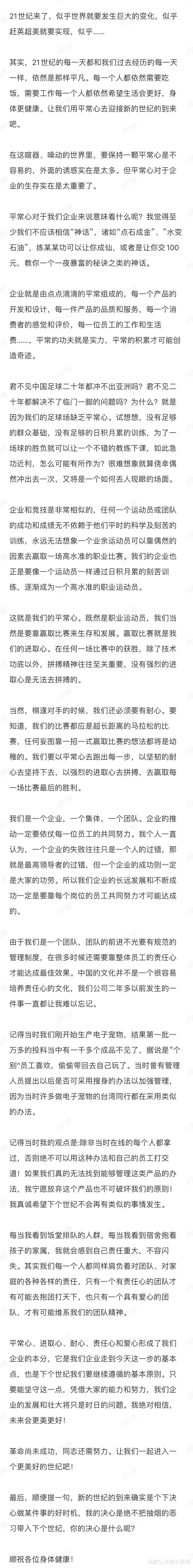同日,vivo背后的男人、步步高创始人段永平在雪球上晒出了一张旧文照片,题目是《二十一世纪来了》,这篇旧文内容源自1999年他在步步高的内部讲话整理,所以vivo走过的这30年,同时也是步步高的30年。