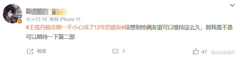 与此同时,网友们也纷纷感叹,王珞丹和杨志刚延续了12年的友情。