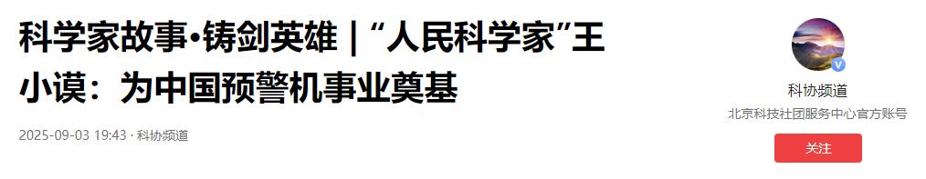 王小谟院士留下的自力更生、顽强拼搏的预警机精神,仍在激励后人。