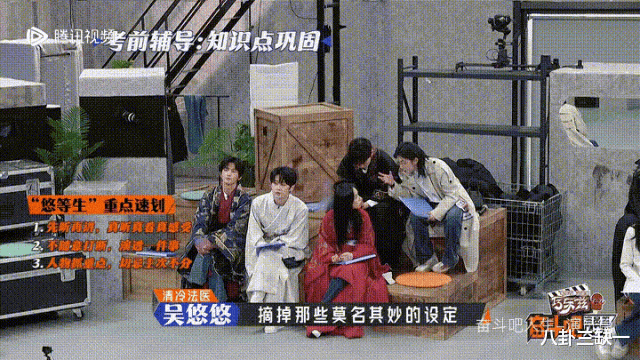 吴悠悠那组即兴考核,拿到的是“衙门探案”的剧本。作为组内经验丰富的大姐姐,她在准备阶段就一直帮助大家梳理人物内核和表演逻辑。一边吸取前面同学的经验,一边紧急在台下开小灶给大家“补课”。
