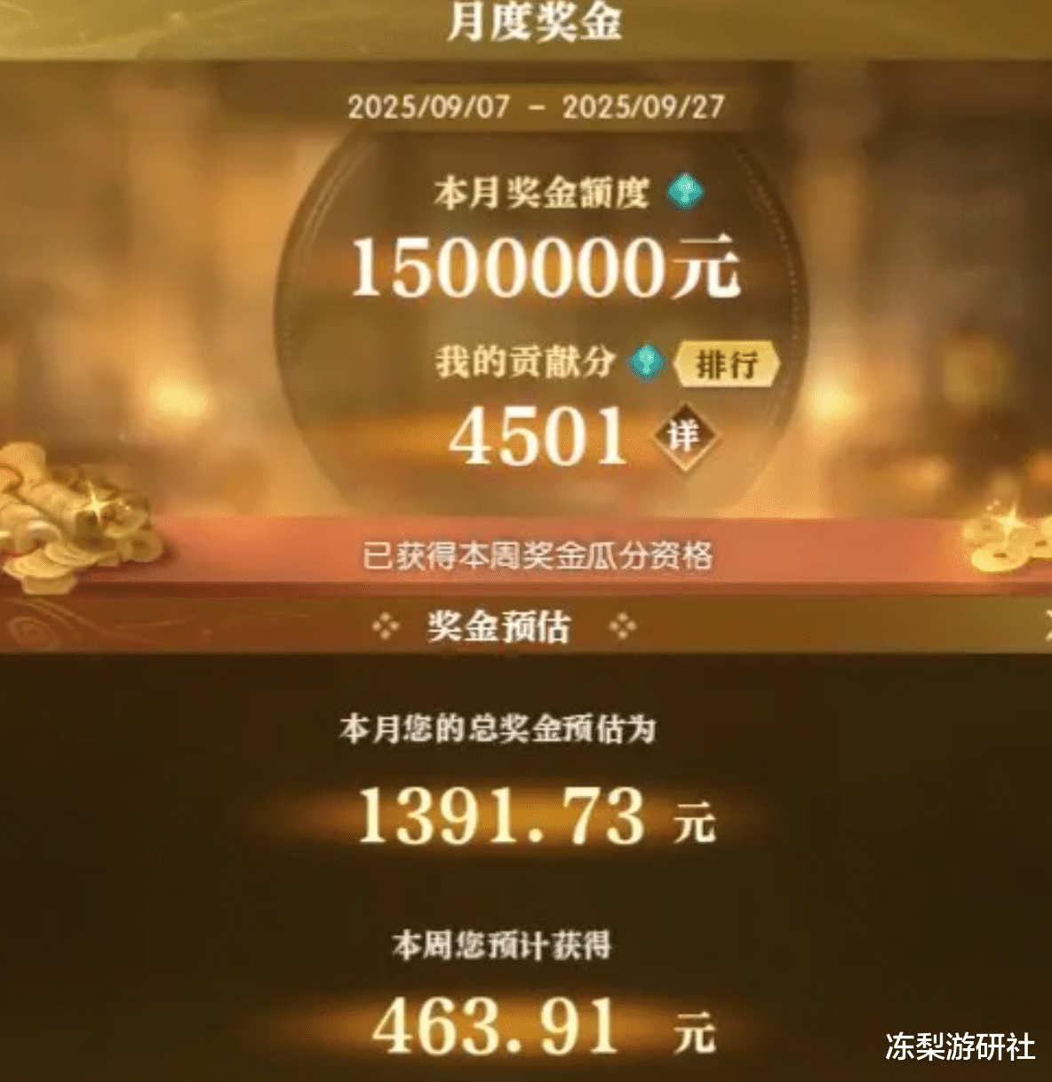 如今,《逆水寒》的工资已经改成了周薪,小李晒出自己最新参与《逆水寒》合伙人计划的工资分成——仅一周就分到了 463.91 元。凭借着这些收入,小李已经能够自给自足,无需再向父母伸手要生活费。