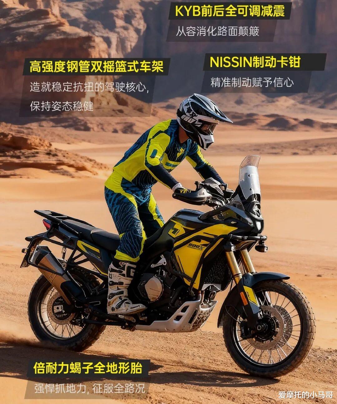 既然敢称“集大成”,无极DS800X在整车配置上,自然做到了“入门即满配”,没有多余的花架子,每一项配置都精准贴合公路摩旅与越野穿越的核心需求,到手不用额外改装,就能直接奔赴山海。