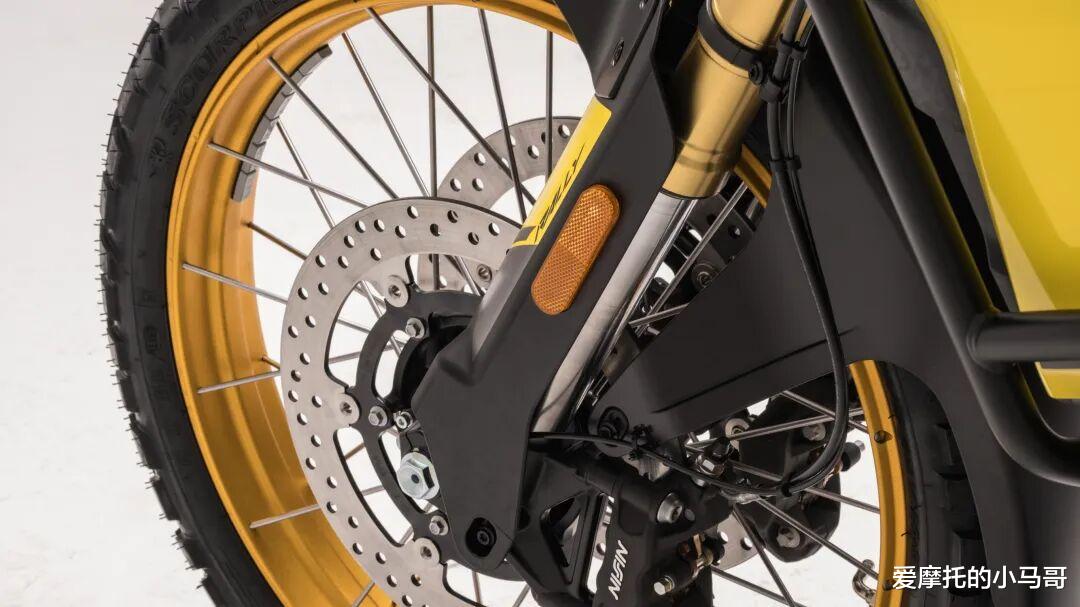 制动这块DS800X的配置规格依旧很高,前刹为Nissin对向四活塞卡钳搭配双浮动碟盘,后刹为Nissin单活塞卡钳,无论是品牌还是活塞数量都算得上是顶配了。