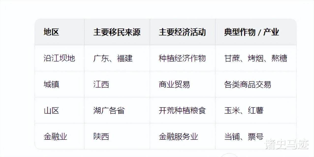劳动力配置的分流机制也很重要。不同来源的移民根据自身特长选择不同区域和产业。例如,广东、福建移民在宜宾沿江坝地种甘蔗、烤烟,带来了熬糖技术;江西移民则主要从事商业活动;陕西人带来了金融资本,开设当铺、票号。
