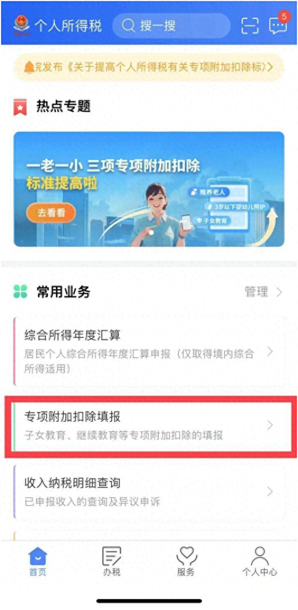 点击“专项附加扣除填报”模块