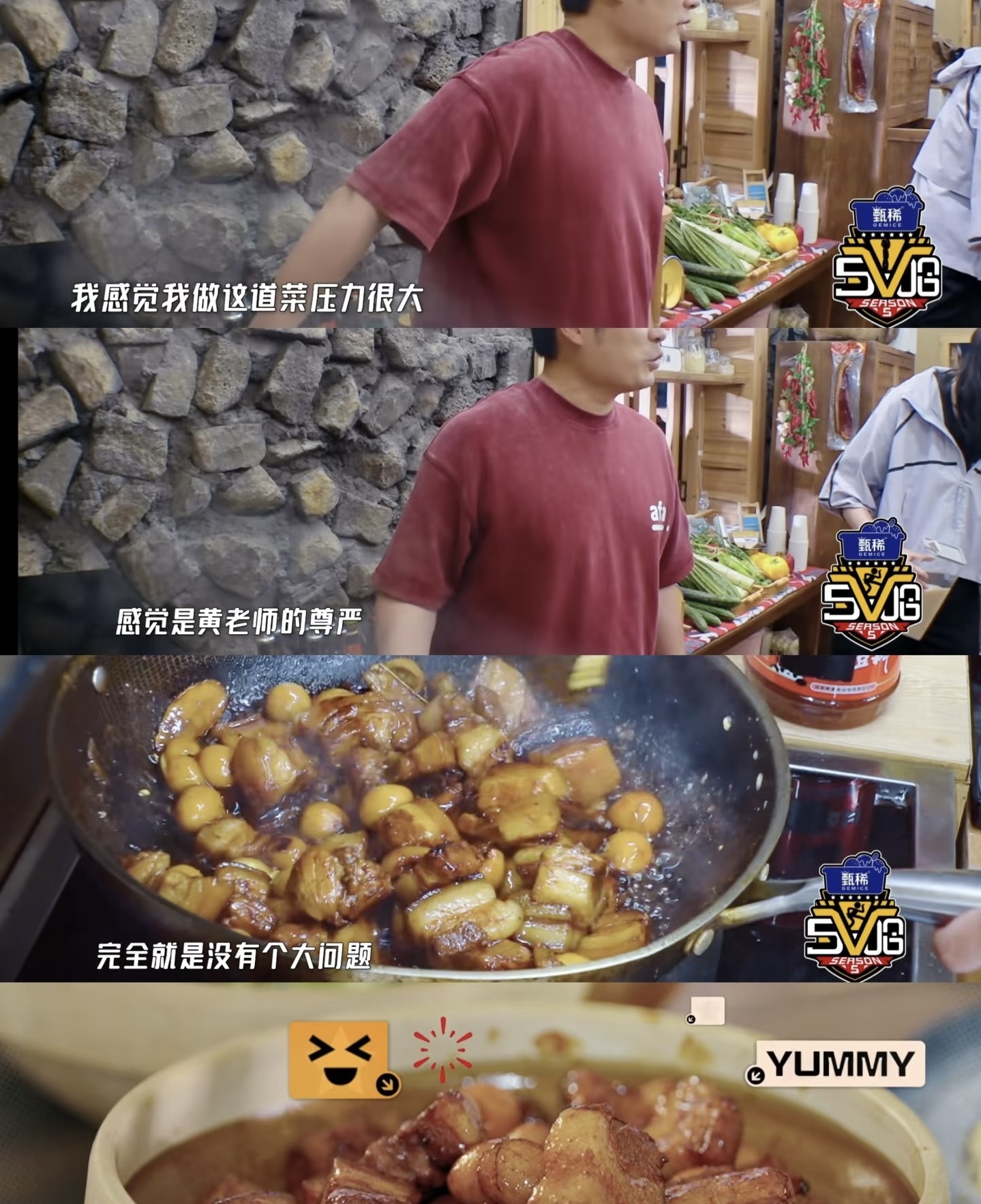 没错,就是那道传说中“一块肉熬出半部《舌尖上的中国》”的神级料理!就是那道让无数人高呼“黄小厨yyds”的封神之作!而陈赫,不仅没跑偏,还直接原地封神,一气呵成的操作看得人直呼:这哪是做饭?这是在演《厨神下凡》!