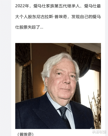 1999年,普埃奇将价值150亿美元的爱马仕股票(占公司总股本5.76%)全权委托自己信任的理财顾问埃里克·弗雷蒙德管理;
