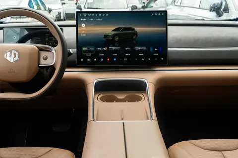 内饰配置上,新增了砂岩棕和浮光灰两种配色,看起来特别温馨。中控台 “两横三纵” 的立体布局很规整,不会给人杂乱的感觉,而且加入了尤加利木纹饰件点缀,摸上去手感细腻,一下子就把内饰的豪华氛围拉满了。最吸引眼球的肯定是那块 17.3 英寸的悬浮式中控大屏,2.8K 的分辨率真不是吹的,显示效果特别细腻,不管是看导航地图还是放娱乐视频,画面都很清晰,没有颗粒感。这块中控大屏搭载了高通 8295P 芯片与 Leapmotor OS 4.0 系统,操作流畅度较好,接近不少高端设备的水准。无论是日常使用的导航功能、车机互联,还是各类娱乐应用,都能在这块大屏上顺滑运行,几乎感受不到卡顿,提升了用户的操作体验。除了中控屏,10.25 英寸的全液晶仪表盘和 60 英寸 AR-HUD 抬头显示系统也很实用,三者组成了 “三驾马车”,开车的时候,车速、导航路线这些重要信息都能清晰地显示出来,基本不用低头看仪表盘,对行车安全也有帮助。比如跑高速的时候,AR-HUD 能把导航指引直接投射到前挡风玻璃上,就像实景导航一样,不容易走错路,对偶尔会 “路痴” 的人来说太友好了。