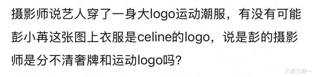 按这配置,好像没什么靠炮制艺人争议来博眼球、蹭流量的必要?眼看着大家的矛头齐刷刷指向自家姐姐,粉丝那边也是急得火急火燎,飞速给出了一版看似头头是道的澄清,什么摄影师说艺人穿了一身大logo运动潮服,可彭小苒那张图里的衣服明明是CELINE的标识啦,难不成这位摄影师连奢侈品牌和运动品牌的logo都分不清?