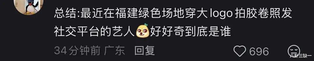 当然,“对号找人”也是必不可少的,根据帖中提到的“最近在福建绿色场地穿大logo拍胶卷照发社交平台的艺人”这一指向,福尔摩斯·网友们立刻开启全网筛查模式。