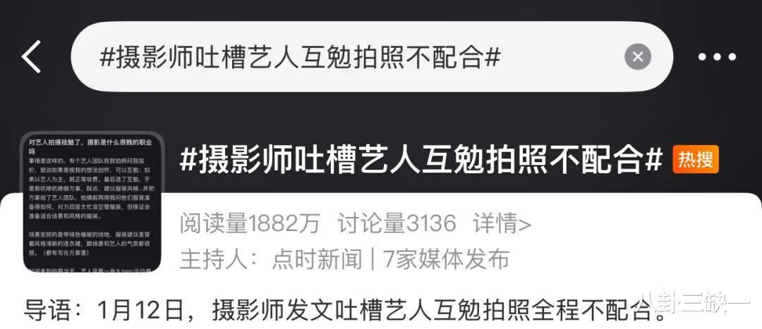 不知道大家有没有刷到#摄影师吐槽艺人互勉拍照不配合# 这个热搜,南风反正是一把子就点开了。