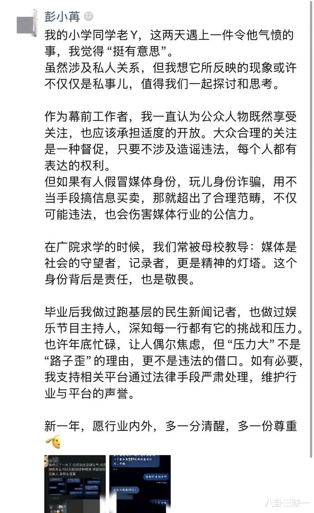 其实放眼娱乐圈,这种模糊爆料让网友自行对号的操作,早就见怪不怪了。对爆料者来说,不点名道姓是最稳妥的避险方式,既能把委屈说出来,又不用担上诽谤的风险。但这招看似精明,苦的却是那些被无端波及的艺人,澄清吧,会被扣上“急着洗白”的帽子,越解释越像欲盖弥彰;不澄清吧,又会被默认是“心虚认栽”,任由谣言发酵、揣测满天飞。就像这次的彭小苒,要是她真的跟这场互勉纠纷八竿子打不着,那她真的有点无妄之灾了,平白被推上风口浪尖,被翻出陈年旧事反复拉扯,路人缘被消耗,还要被贴上莫须有的标签。没有人的劳动成果就该被白嫖,可反过来,也没有人该平白无故地揽下没头没尾的匿名指控。