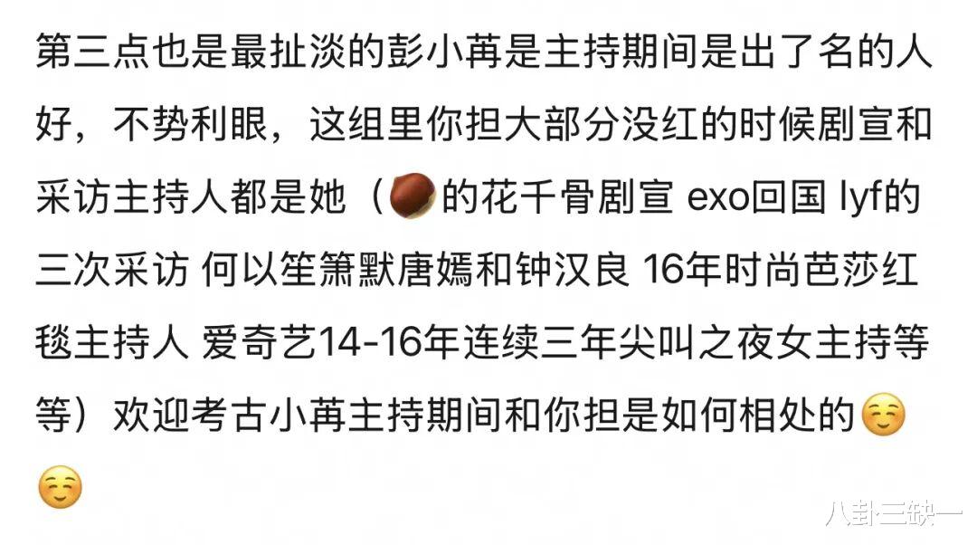 还有人说她看人下菜碟,这就更没道理了,她做主持人的时候待人亲和是出了名的,好多艺人没走红前的剧宣和采访,都是她帮忙主持的......