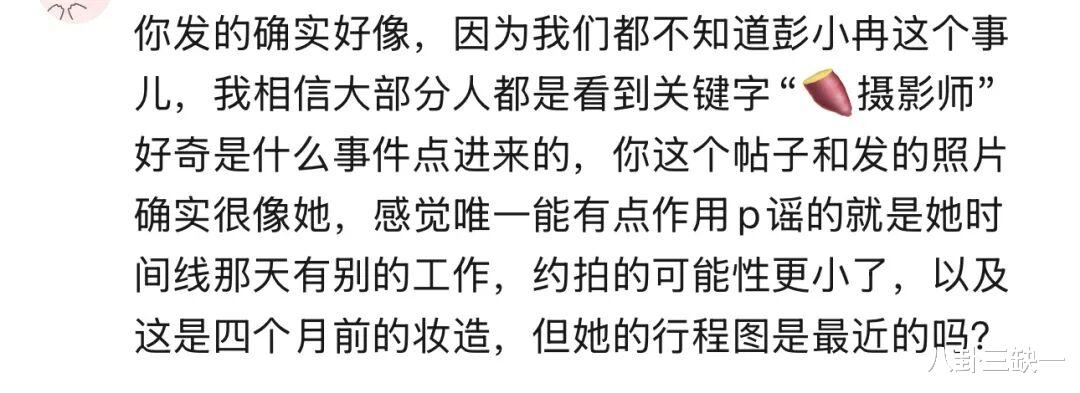 这份澄清里唯一有点作用的辟谣,也就只有拉时间线证明彭小苒当天有其他工作安排,约拍的可能性相对小一点。