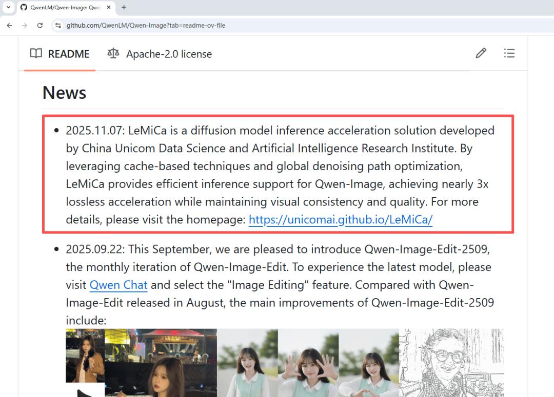 LeMiCa得到了顶级多模态模型研发团队阿里通义千问和智谱AI的认可,分别在其官方主页上对LeMiCa进行权威推荐!