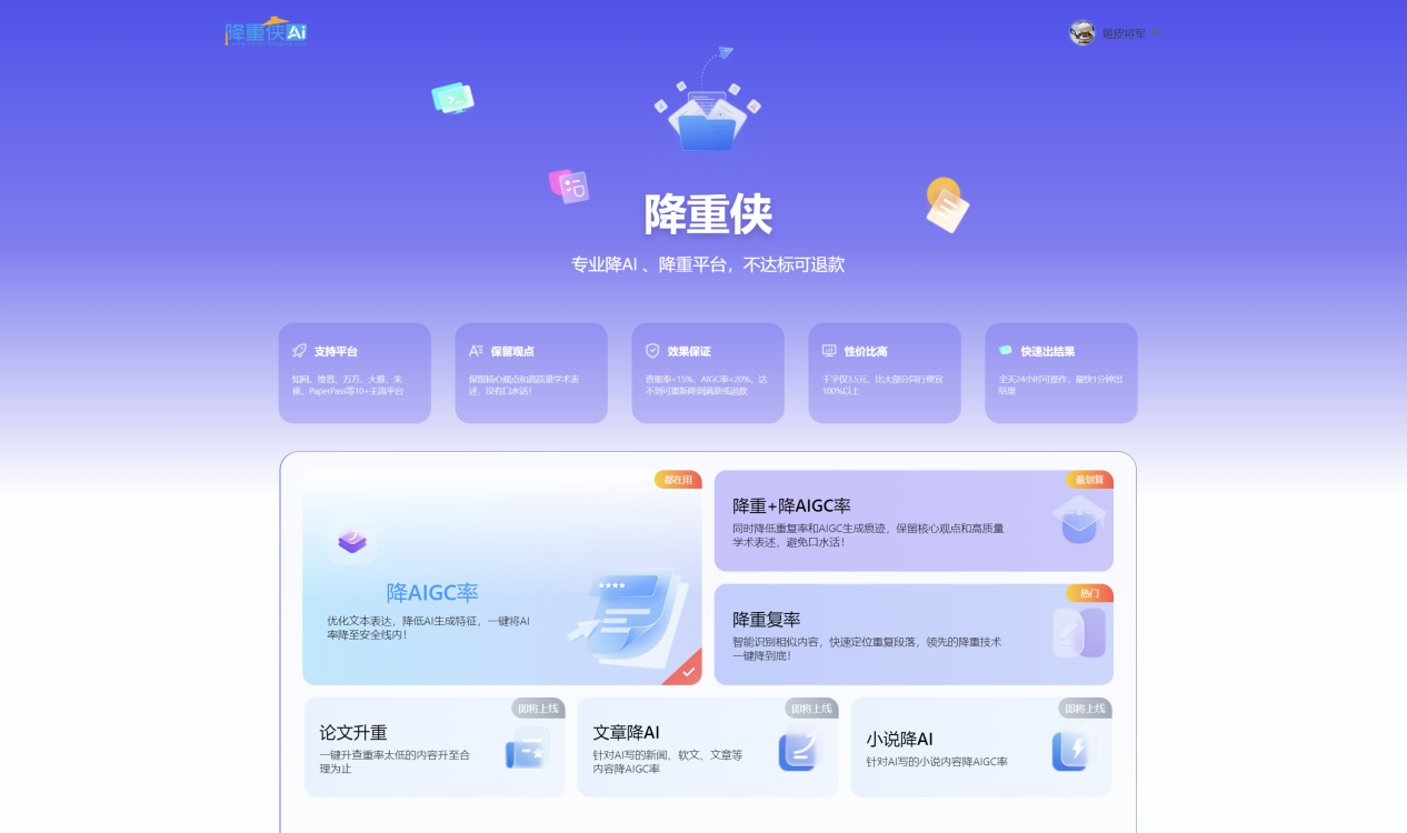 降低AI率不是躲避检测系统,而是让我们的写作回到学术写作的本质上来,即用不同的角度来组织内容,用丰富多样的语言来表达思想。降重侠AI的价值在于帮助我们高效地去除掉“机器痕迹”,从而把更多的时间留给研究本身,而不是花在句式的修改上。