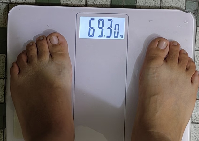 看着我早上称的体重,回想一下,我两个月的体重还是有变化的,刚开始没有减肥的体重是76公斤,那时候没有买称回来就没有称,称回到的时候是74公斤。