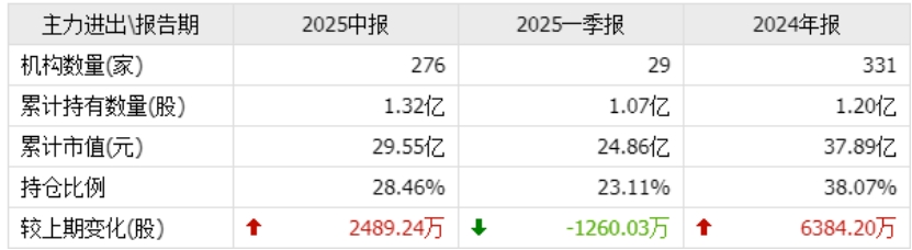 机构动态:二季度机构持股数276家,较一季度增加247家,合计持股1.32亿股,加仓2489万股。