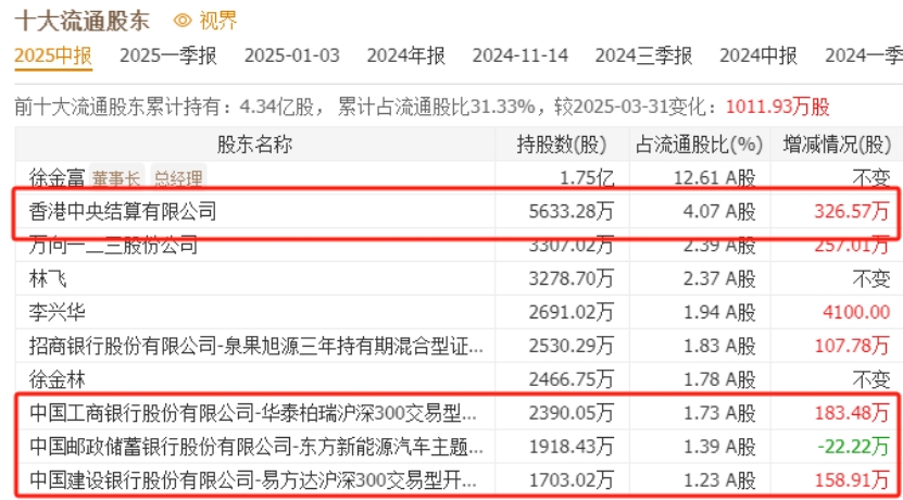 机构动态:二季度机构持股数422家,较一季度增加399家,合计持股3.38亿股,加仓1.57亿股。前十大流通股东合计加仓1011家。其中,北上资金重仓5633万股,加仓326万股;两大沪深300ETF合计加仓242万股,重仓4093万股。