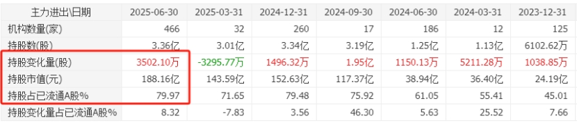 机构动态:二季度机构持股数466家,较一季度增加434家,合计持股3.36亿股,加仓3502万股,持股占已流通A股的80%,筹码高度集中。