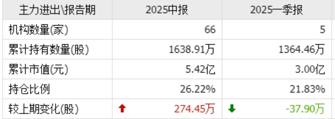 机构动态:二季度持股机构数66家,较一季度增加61家,合计持股1638万股,加仓274万股。