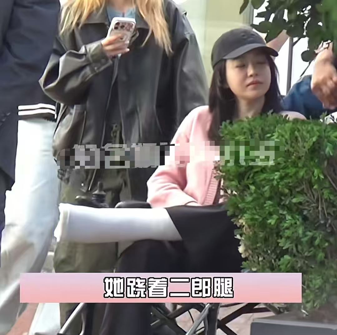 想来也是低调出行,她坐在轮椅上,旁边的小助理一直在推着她,可以看到她的脚包的跟粽子一样。