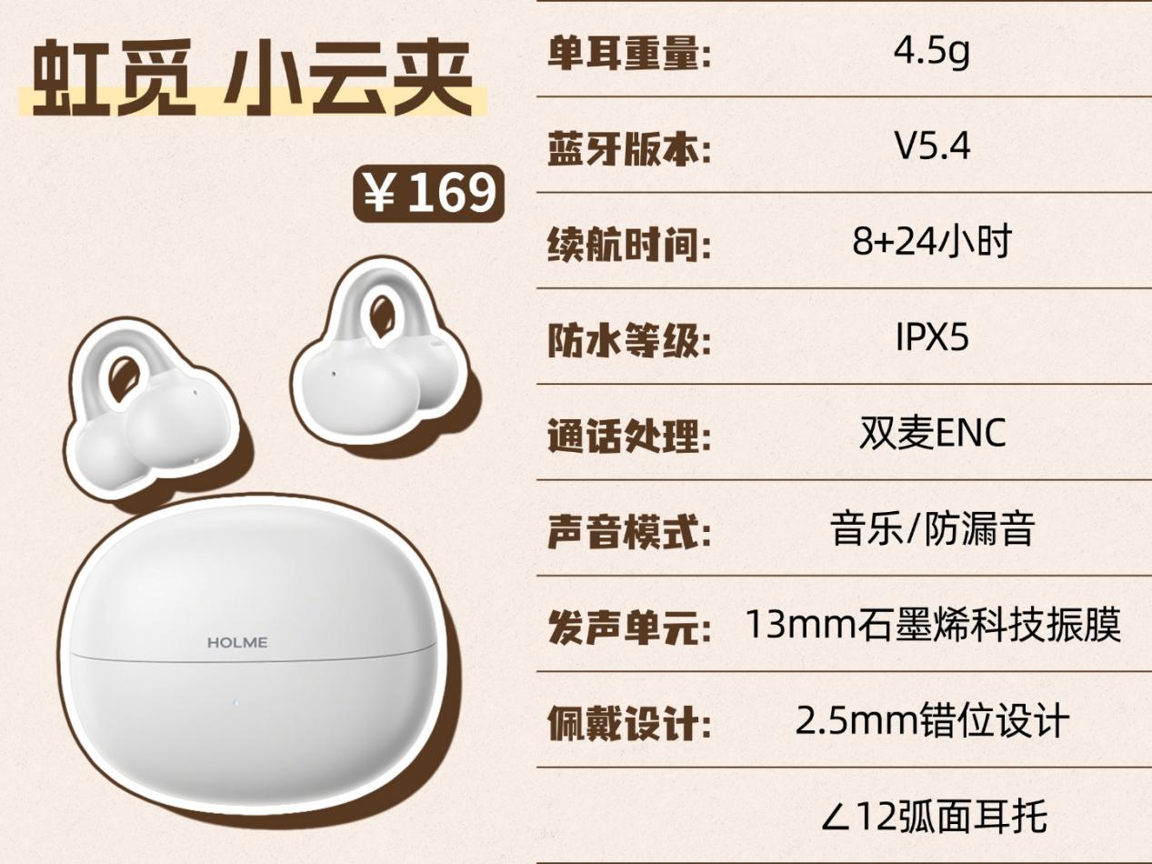 虹觅小云夹这款耳机,在百元价位里综合表现非常强,性价比很高,日常使用很值得入手。它的续航表现出色,充满一次电,正常用上两天完全足够。还带有实用的防漏音模式,开启后效果比同价位很多机型都要好。
