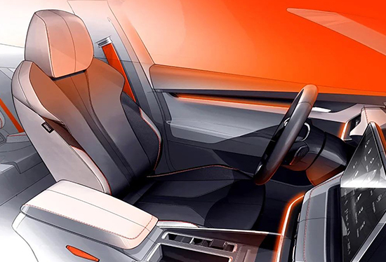 根据设计草图来,斯柯达Elroq车头采用了“X”造型设计,狭长的格栅与底部包围的梯形蜂窝进气口,为前脸带来了不错的层次感。前大灯采用了全新的分体式设计,增加了前脸的时尚气息与科技感。