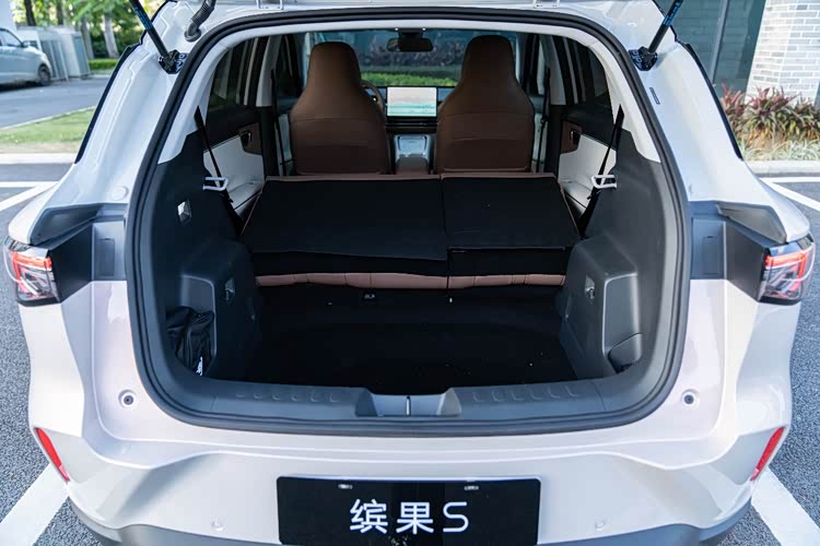 而且,缤果S的空间大,乘坐质感好,第二排的腿部空间达到了882mm,成年人在后排可以跷二郎腿,在冬天出行的时候,缤果S可以给全家人都有一个好的保障。它的第二排座椅放倒之后,后备箱可以拓展至1450L,搬运一些大件的行李物品的时候可以发挥非常好的作用。