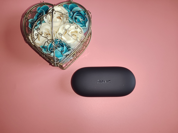 南卡 NANK WING耳机的外部为电源仓盒,电池盒采用黑色的pc材质并在表面进行了磨砂处理,使整体极富质感,如鹅卵石般的椭圆形的外观,超薄小巧,握感也更加舒适,方便携带。前面放置了电量状态显示的指示灯。仓盒底部设置了type-c充电接口,保持了不错的兼容性。由于减少了多余的装饰使得耳机的电池盒的体积更加小巧,重量也有所减轻。