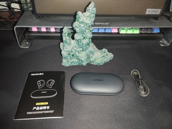 厂家为南卡 NANK WING 蓝牙耳机配备了usb充电线与说明书等配件。并且耳机搭配了与耳机同色系的充电线,在风格上形成了统一。