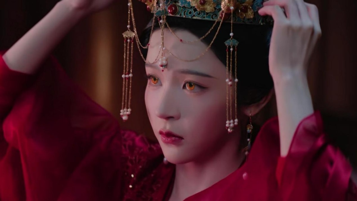 但这次出场就是红嫁衣,美得格外惊艳抢眼,不管是头戴凤冠还是披头散发,都美艳而又妩媚。